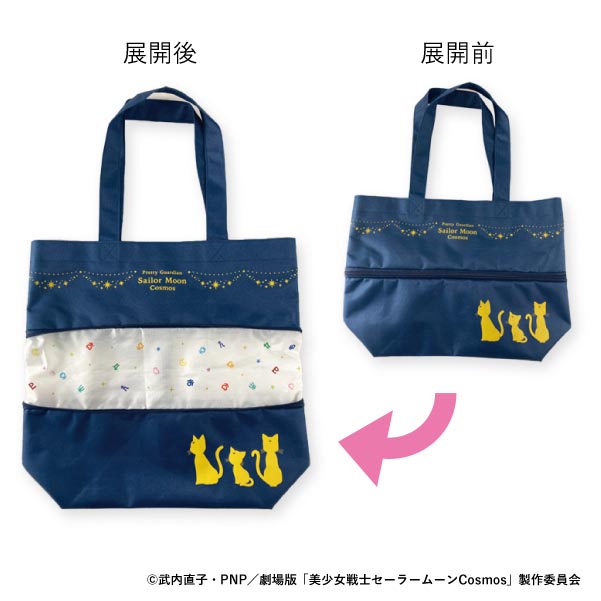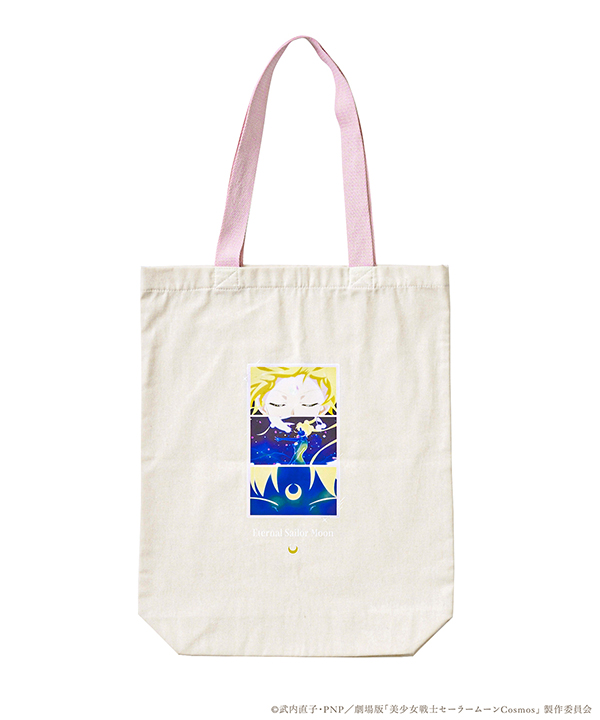 drugie śniadanie - różowa z Eternal Sailor Moon i Eternal Sailor Chibi Moon; 1760 jenów (ok. 54 zł). - Torba zakupowa - czarna z Sailor Starlights; mieści format A4; 2640 jenów (ok. 80 zł). - Etui na identyfikator - do wyboru