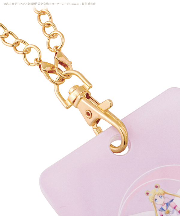 etui na kartę - z odpinanym złotym łańcuchem; do wyboru dwa wzory: z różowe z Eternal Sailor Moon oraz białe z inner senshi i Eternal Sailor Chibi Moon; 330 jenów (ok. 10 zł) za sztukę. - ozdobna taśma klejąca - do wyboru dwa