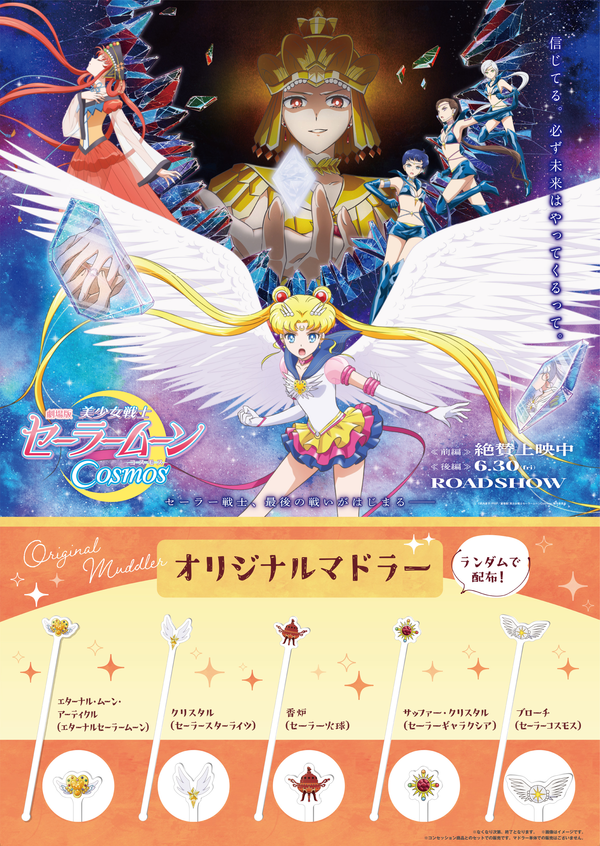 Do napojów będą losowo dodawane akrylowe mieszadełka z ozdobnymi końcówkami. Do uzbierania 5 wzorów: Eternal Moon Article, kryształ Sailor Starlights, kadzidełko Księżniczki Kakyuu, Lazurytowy Kryształ Galaxii oraz broszka Sailor Cosmos.