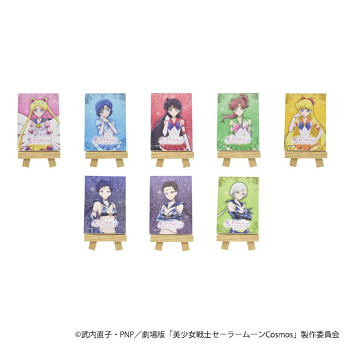 pocztówek - do wyboru zestaw ze wzorem z inner senshi i Chibi Moon lub zestaw z wzorem z outer senshi, Chibi Chibi i Sailor Starlights; 990 jenów za zestaw (ok. 28 zł). - naklejki - do uzbierania 14 wzorów, każdy z inną wojowniczką