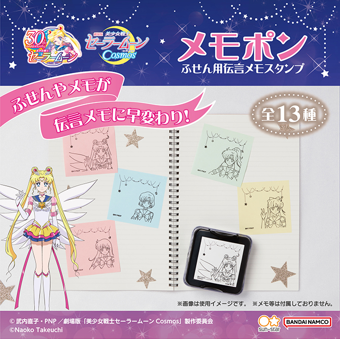 Memopon to rodzaj stempli do samoprzylepnych kwadratowych karteczek. Do pojemnika wkłada się bloczek kartek, zamyka się przykrywką i poprzez dociśnięcie wieczka stempluje się na karteczce określony wzór. Memopony z Sailor Moon Cosmos będą