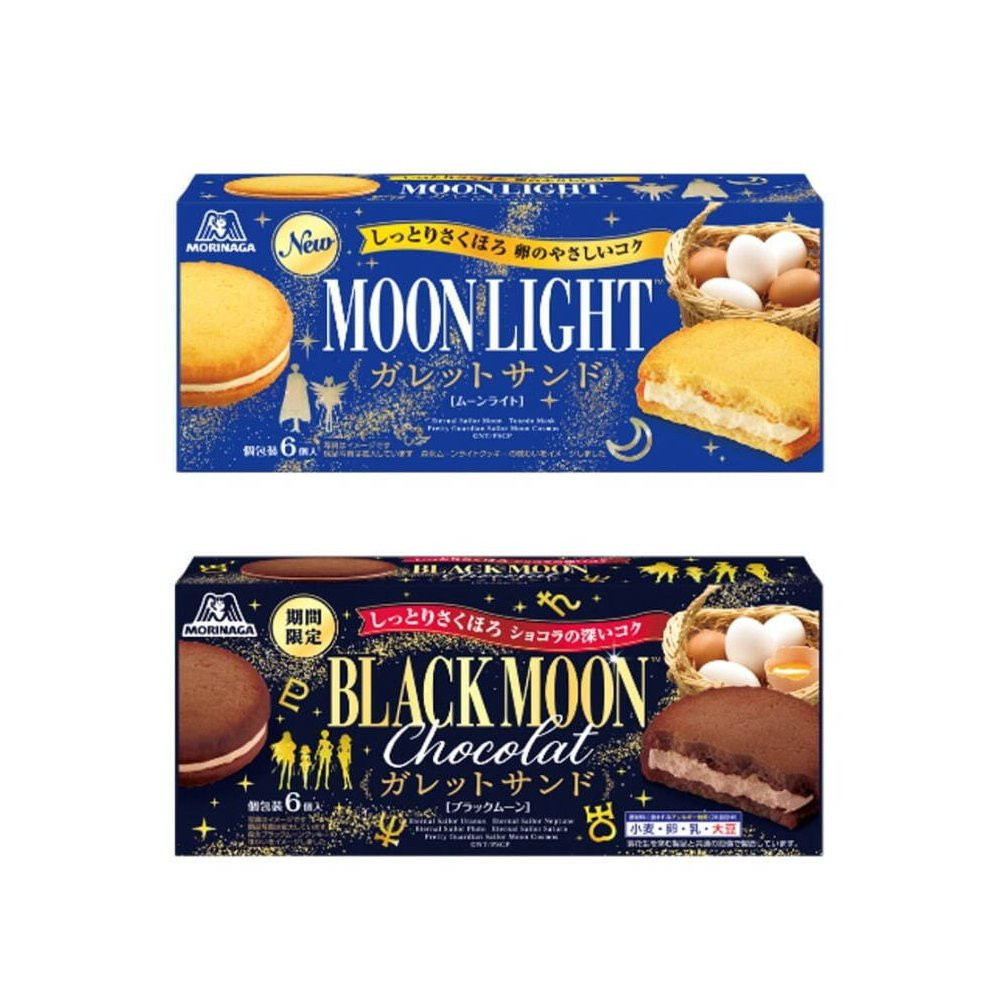 Siedem z ośmiu opakowań ciasteczek dużych pojawi się w sprzedaży pod koniec sierpnia, a paczki Moonlight Cookies z Eternal Sailor Moon na opakowaniu pojawią się dopiero 10 października. Opakowania mini ciasteczek pojawią się w sprzedaży