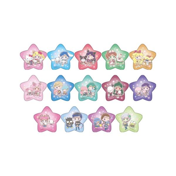 Słonecznego, Sailor Starlights oraz Sailor Chibi Chibi Moon; wymiary przypinki to 56 x 60 x 5 mm; sprzedawane losowo w cenie 770 jenów (ok. 22 zł) za sztukę; w przedsprzedaży można również zamówić pudełko zawierające wszystkie 14 sztuk