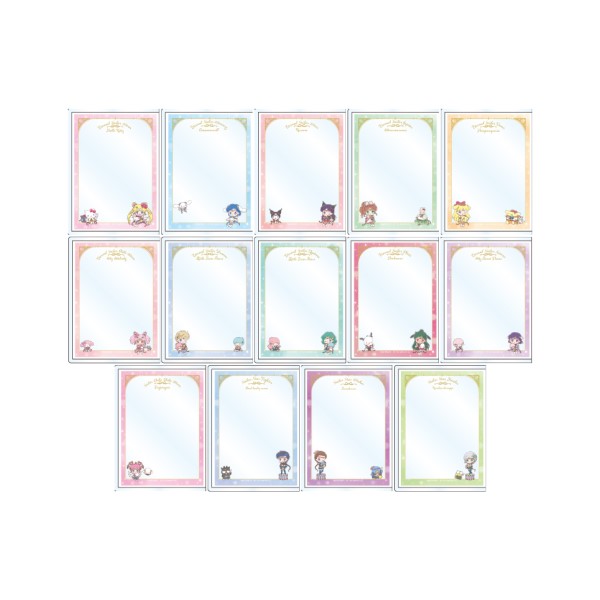 770 jenów (ok. 22 zł) za sztukę; w przedsprzedaży można również zamówić pudełko zawierające wszystkie 14 sztuk w cenie 10 780 jenów (ok. 303 zł). - arkusze z naklejkami - do wyboru dwa arkusze w kolorze niebieskim i różowym; na