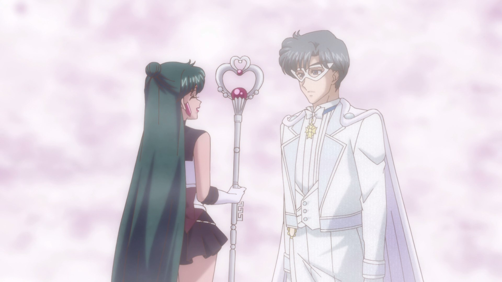 | Postacie występujące w odcinku: | Usagi, Demande, Minako, Mamoru, Chibiusa, Mędrzec, Saphir, Rubeus, Luna, Artemis, Diana, Ami, Rei, Mako, Sailor Pluto. |