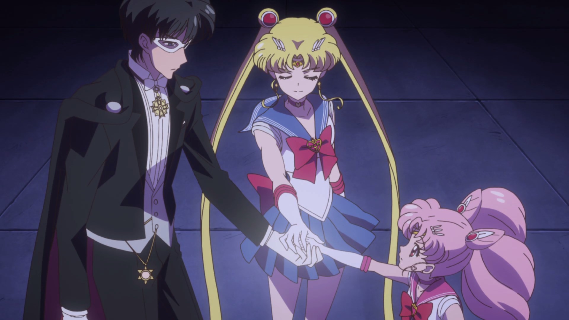 | Postacie występujące w odcinku: | Setsuna, Chibiusa, Usagi, Ami, Rei, Mako, Minako, Michiru, Haruka, Mamoru, Diana, Ikuko, Kenji, Luna, Artemis, Profesor Tomoe, Kaolinite, Pharaoh 90, Cyprine, Hotaru, Ptilol. |