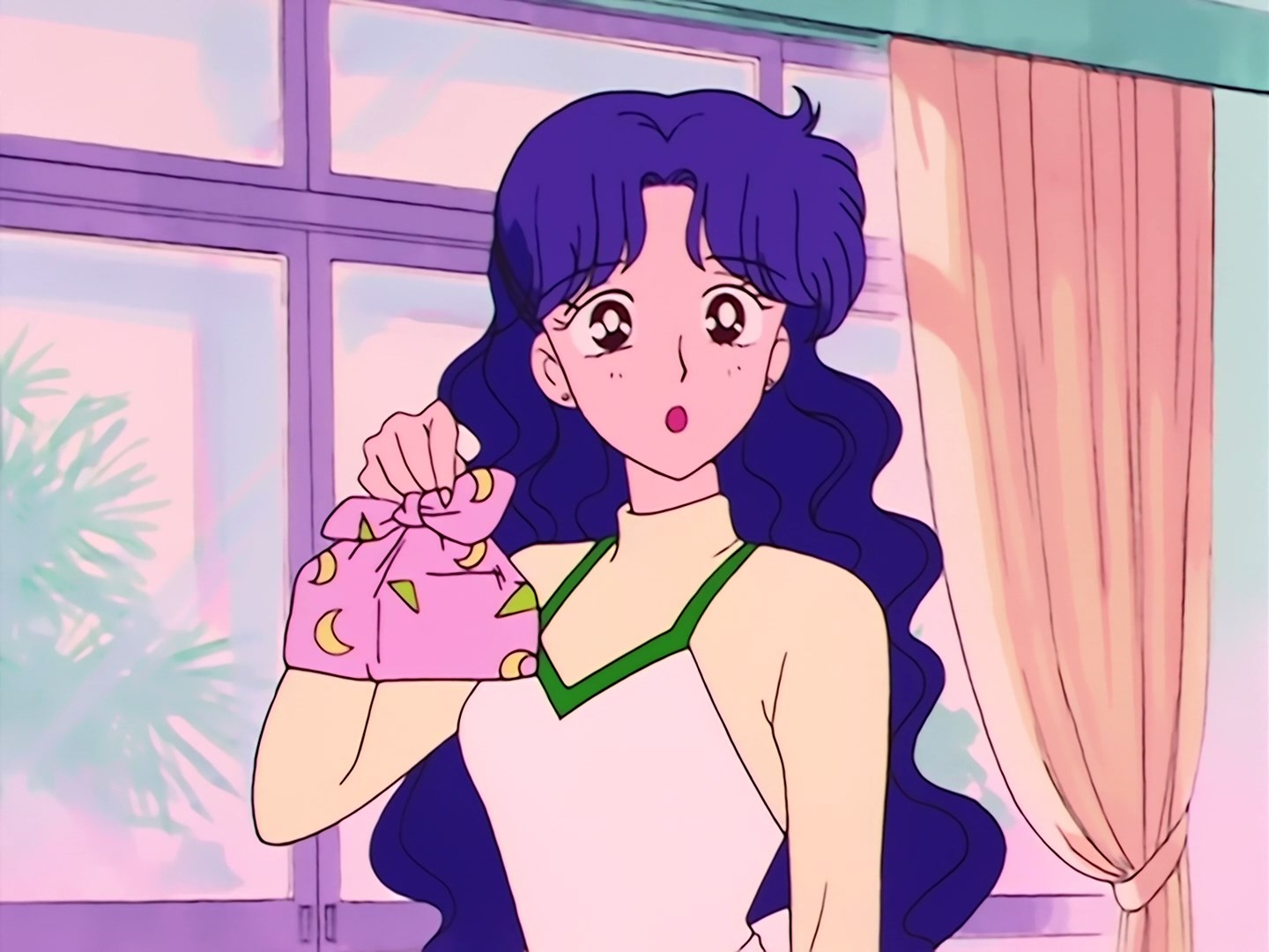 robi obrót w powietrzu, dzięki czemu pojawia się broszka, którą wręcza Usagi. Dziewczyna jest zachwycona prezentem i przypina broszkę do kokardy na piersi. Luna próbuje jej wytłumaczyć, że w mieście dzieją się dziwne rzeczy, z którymi