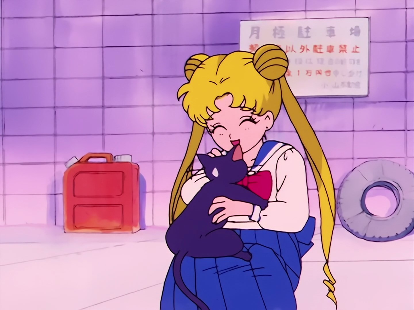 się kota i zdejmuje z jego czoła dwa plasterki przyklejone na krzyż. Pod plastrami ukazuje się znak półksiężyca. Kot odskakuje na dach samochodu i gapi się na Usagi. Ona słyszy nagle dźwięk szkolnego dzwonka i ucieka, żeby nie spóźnić
