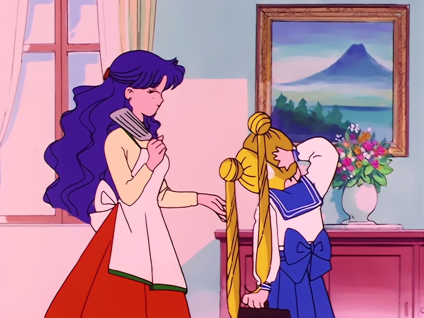 swojej mamy, dlaczego nie obudziła jej wcześniej. Mama odpowiada, że ją budziła i że Usagi wyglądała wtedy na bardzo rozbudzoną. Usagi bardzo się spieszy do szkoły i omal nie zapomina drugiego śniadania. Mama jej o tym przypomina,
