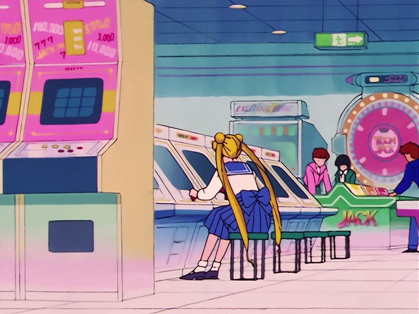 salonie gier. Luna chce zmusić Usagi, aby wróciła do domu, więc łapie ją zębami za rękaw. Usagi wstaje i postanawia wrócić do domu. Motoki się z nią żegna i mówi, że lubi kiedy ona przychodzi do salonu. Usagi czerwieni się i wychodzi