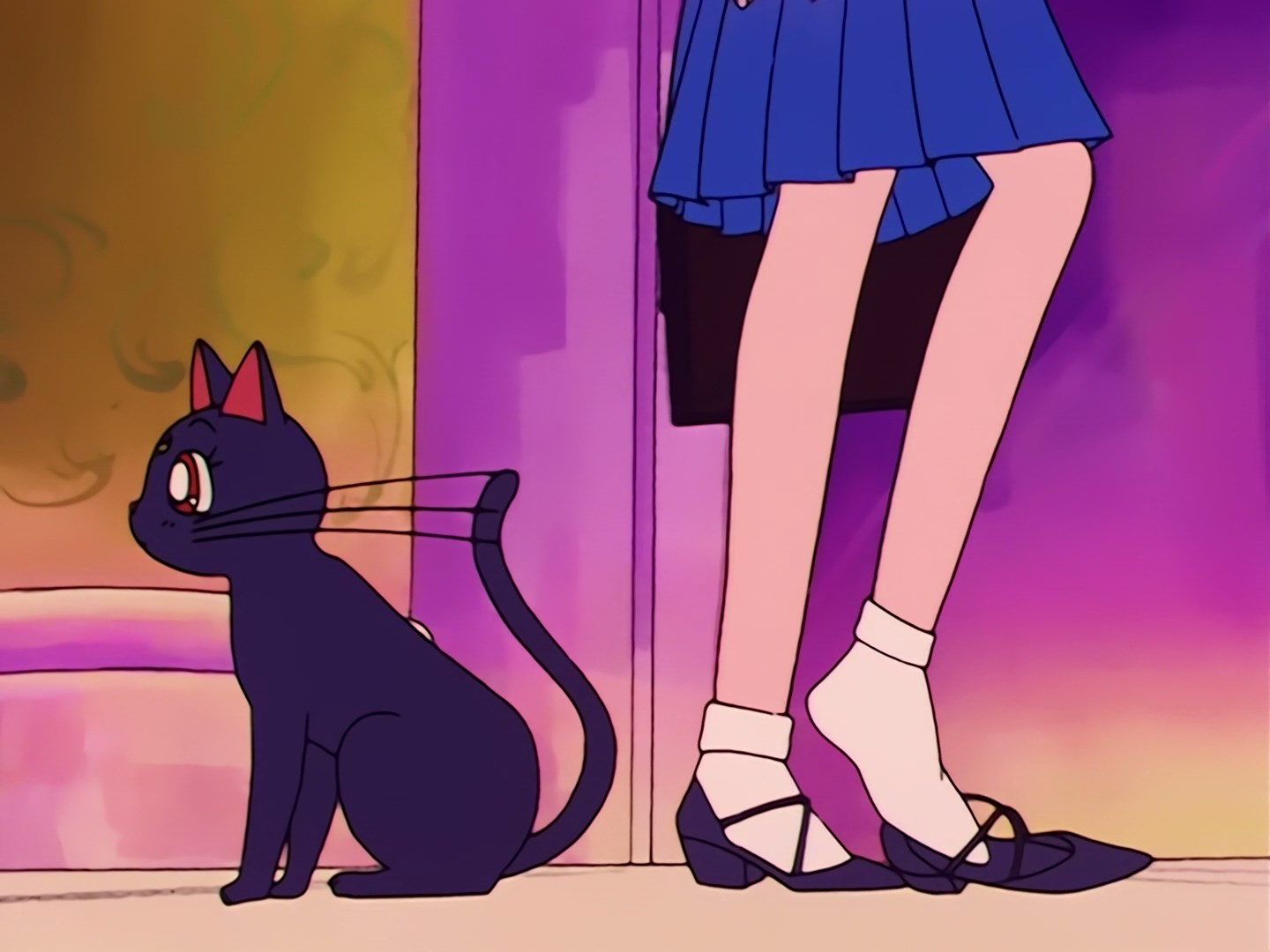 W domu rodziny Tsukino Luna próbuje obudzić Usagi. Kotka skacze na nią i przypomina, że w ten sposób niczego nie osiągnie. Usagi znowu ma pretensję o to, że nie obudziła jej wcześniej. Spieszy się, żeby wyjść jak najszybciej.
