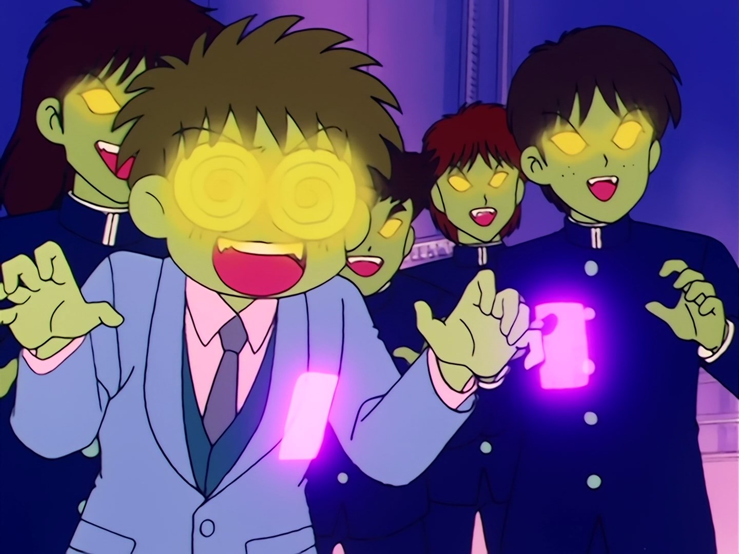 i się przedstawia. Demon rzuca w nią kartami i przemienia się z ludzkiej postaci w brzydkiego demona. Rozkazuje chłopcom zaatakować Sailor Moon. Karty w ich kieszeniach świecą się, a ich skóra zmienia kolor. Idą w kierunku wojowniczki,
