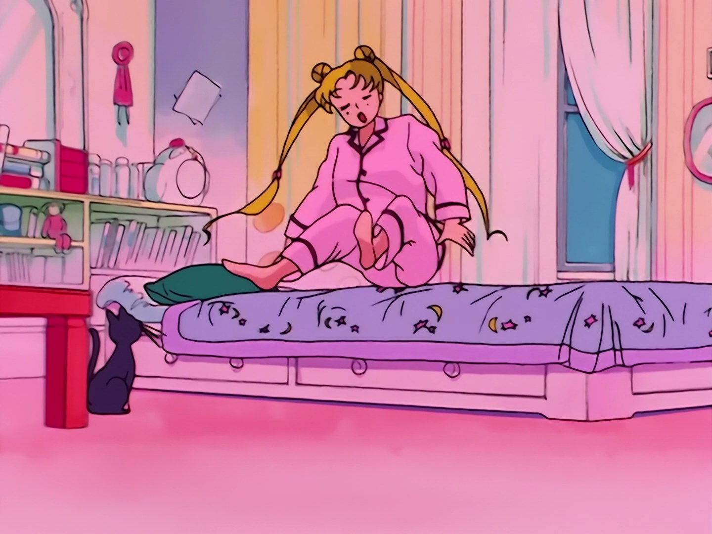 że również chciałaby otrzymać taką broszkę. W tym momencie do jej pokoju chodzi Luna i przypomina, że nie powinna o tej godzinie słuchać radia, ale iść spać, bo rano znów spóźni się do szkoły. Usagi nie podoba się narzekanie jej opiekunki,