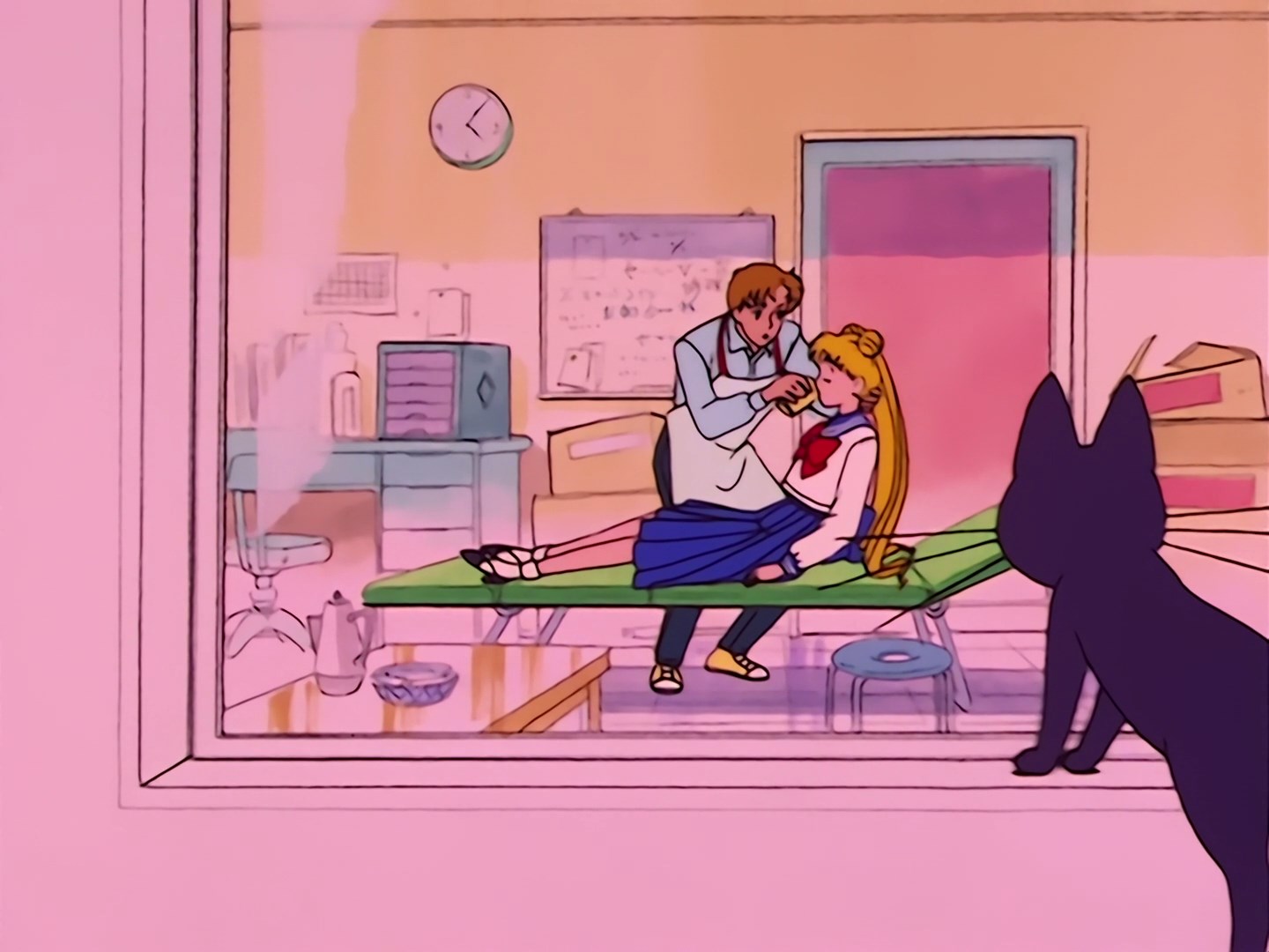 Usagi znajduje się teraz na siłowni i energicznie pedałuje na rowerze stacjonarnym, czemu z zażenowaniem przygląda się Luna. Kotka zauważa idącą korytarzem nauczycielkę Usagi i jest przerażona jej wyglądem. Postanawia ją śledzić