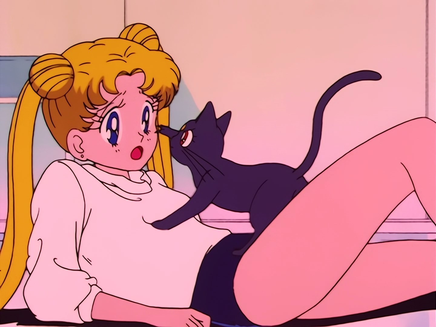 Później w pokoju Usagi, Luna tłumaczy jej, że nie powinna płakać, ale po prostu mniej jeść. W tym samym czasie widać, że Luna rysuje coś na kartce. Usagi pyta się jej, co rysuje, a kotka pokazuje jej rysunek grubej Sailor Moon