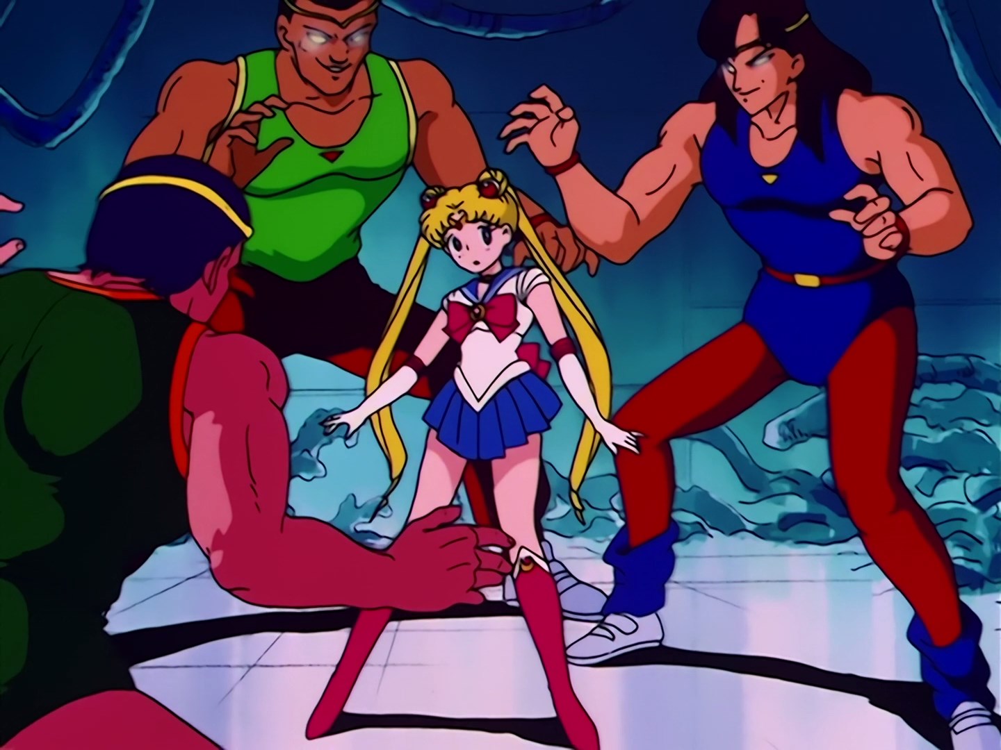 kontroluje za pomocą metalowych opasek na ich głowach. Sailor Moon nie jest zbyt skora do walki, bo boi się wielkich umięśnionych facetów. Luna namawia ją jednak, aby stawiła im czoła, bo w ten sposób może zrzucić parę kilogramów.