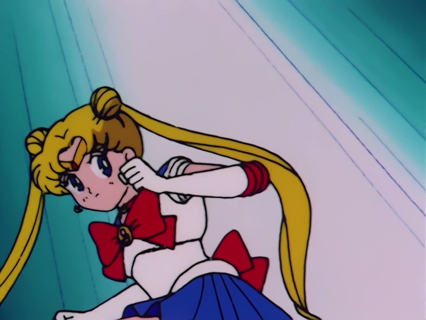 Ten argument ją przekonuje i wojowniczka zaczyna walczyć z instruktorami. Najpierw jest to typowa walka wręcz, a potem wykorzystuje Diadem i atak Moon Tiara Action. Metalowe opaski na głowach instruktorów zostają dzięki temu zniszczone,