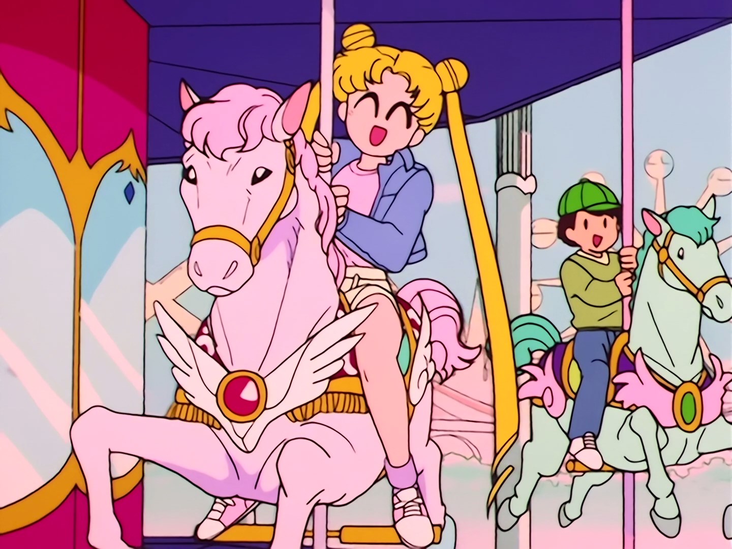 w parku rozrywki. Ami zaczyna się zastanawiać gdzie podziała się Usagi, po czym słyszą jej radosne okrzyki, kiedy jeździ na karuzeli. Po zakończeniu jazdy dziewczyny i Luna siedzą na ławce, a Luna strofuje Usagi, że jest nieodpowiedzialna