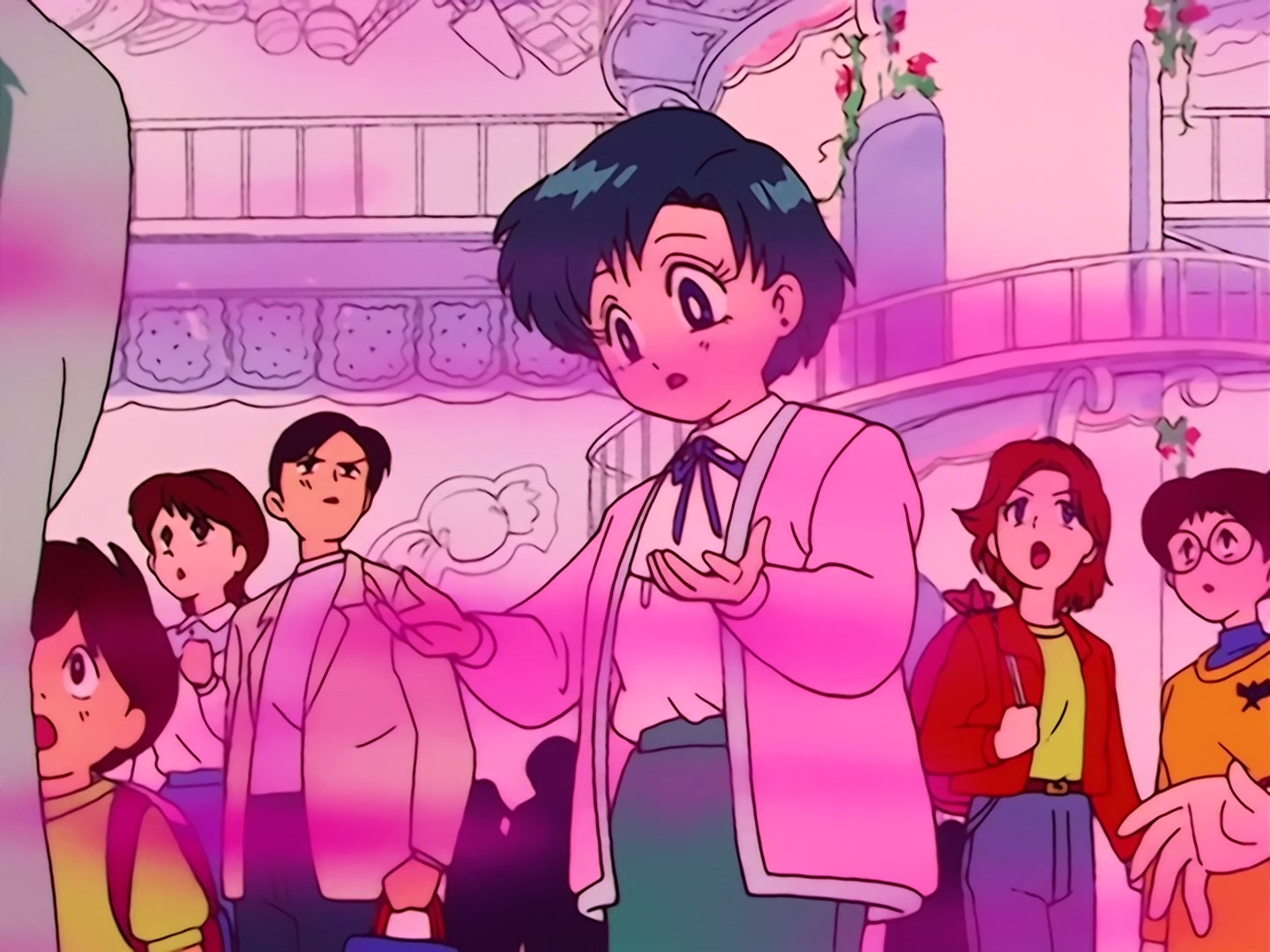 pytania i wyrzuca z budynku reporterów. Za strażnika przebrany jest oczywiście Jadeite. Całej sytuacji przyglądają się Usagi, Ami i Rei.