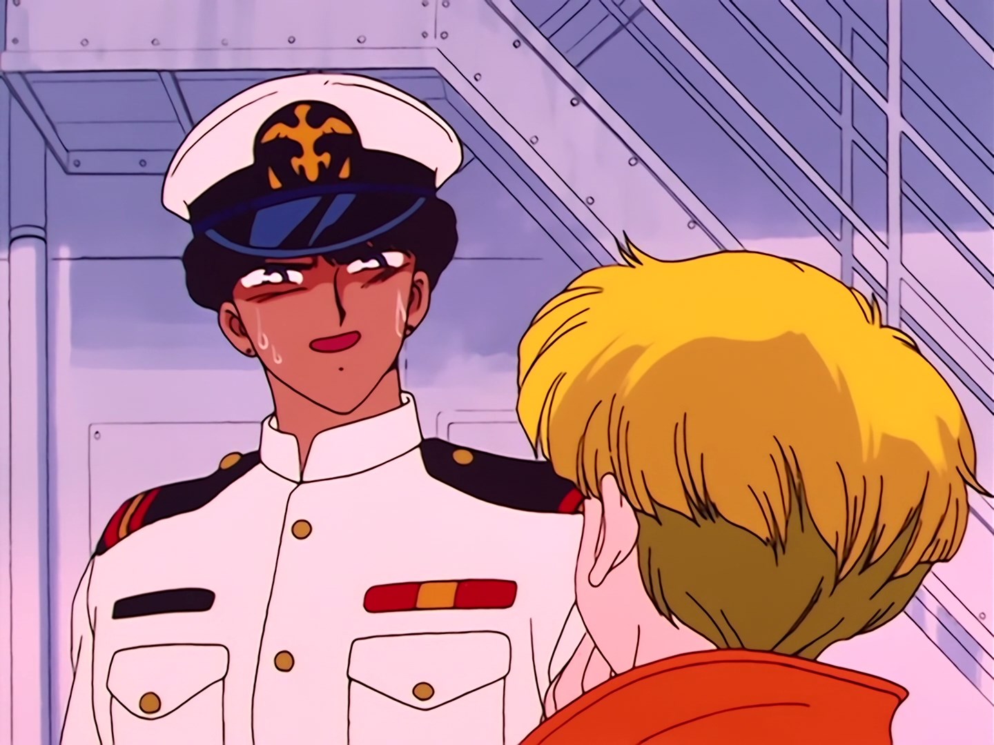 Nagle pojawi się obok nich kapitan i pyta Usagi co tutaj robi. Luna od razu wyczuwa złą aurę, ale Usagi skupia się na tym, że kapitan jest przystojny. Rozmawia z nim chwile i wyjaśnia, że oddzieliła się od swojej
