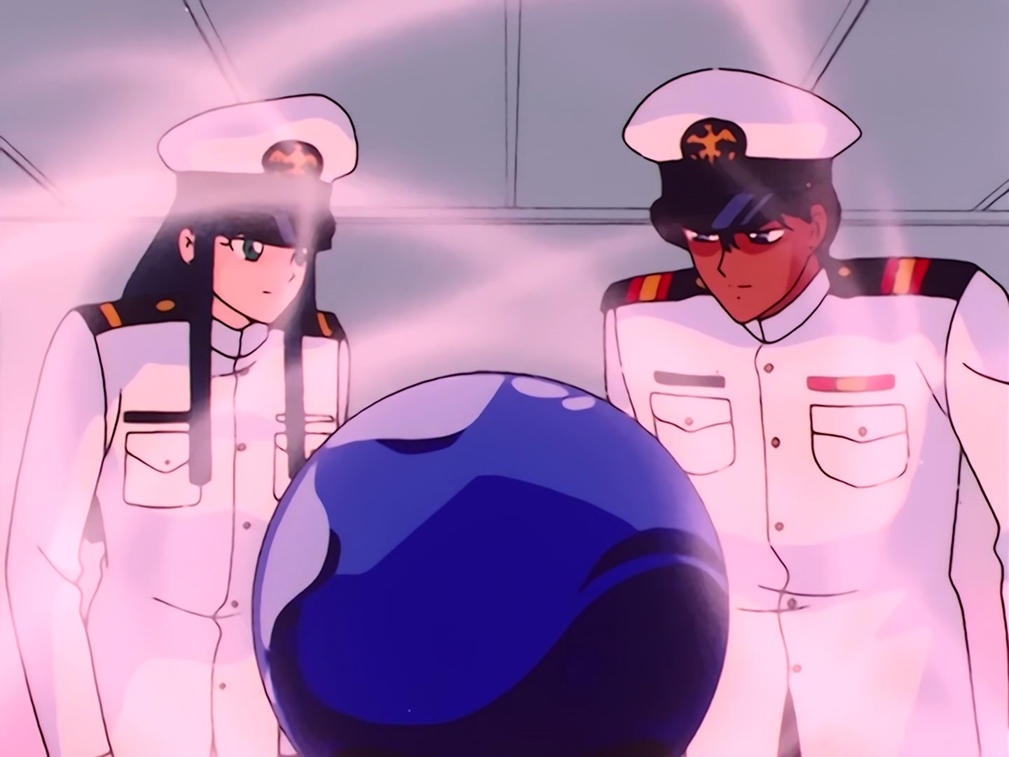 Tetis i Jadeite obserwują pasażerów w szklanej kuli, a Tetis stwierdza, że jej plan na pewno się powiedzie. Przez okrągłe okienko Luna i Usagi obserwują oboje. Luna stwierdza, że to na pewno Demony, ale kiedy obie były zajęte