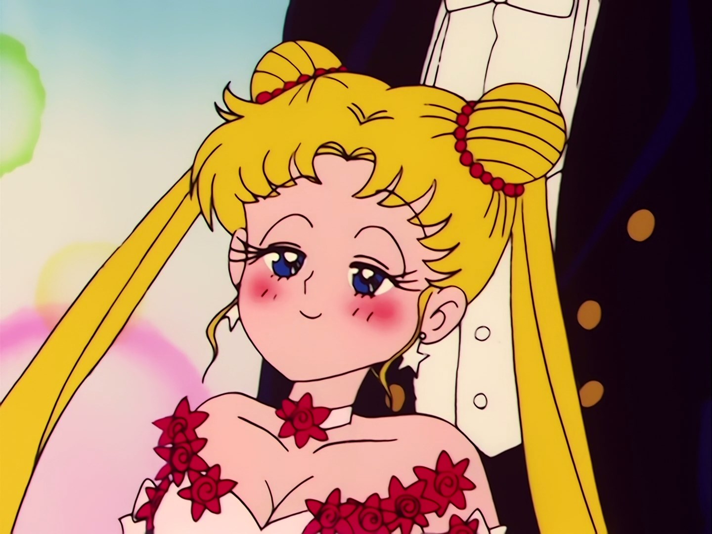 Usagi wróciła na salę balową, ale stoi pod ścianą i jest smutna, bo ma na sobie suknię Księżniczki, ale nie bawi się na balu zbyt dobrze. Podchodzi do niej Tuxedo Kamen i prosi ją do tańca. Kiedy są na parkiecie, dookoła nich