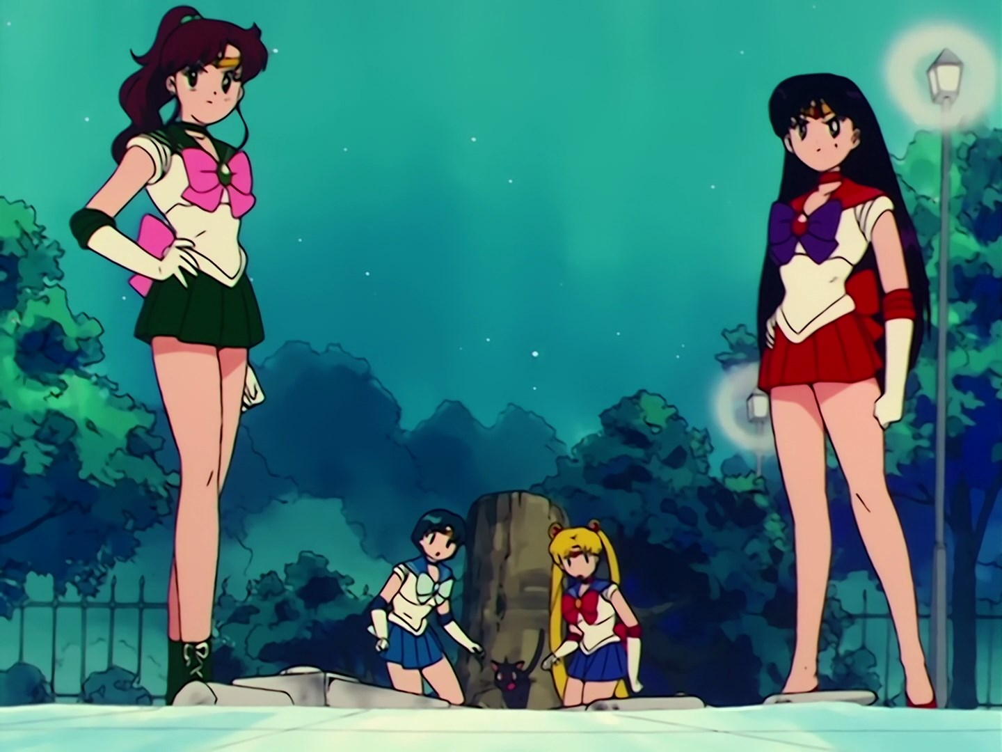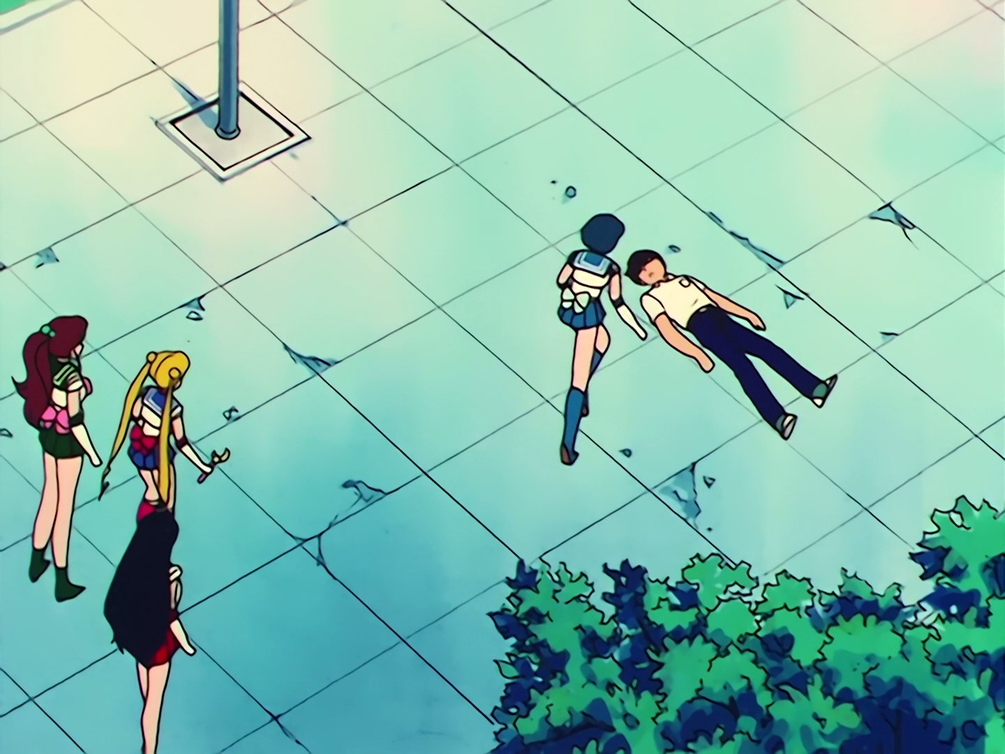 Ulicą biegną Sailor Moon i Luna i zastanawiają się, gdzie może być Sailor Mercury. Luna podpowiada jej, że jeśli użyje Księżycowej Pałeczki to szybko ich odnajdą. Sailor Moon jest zdenerwowana słowami Luny, bo to by oznaczało,