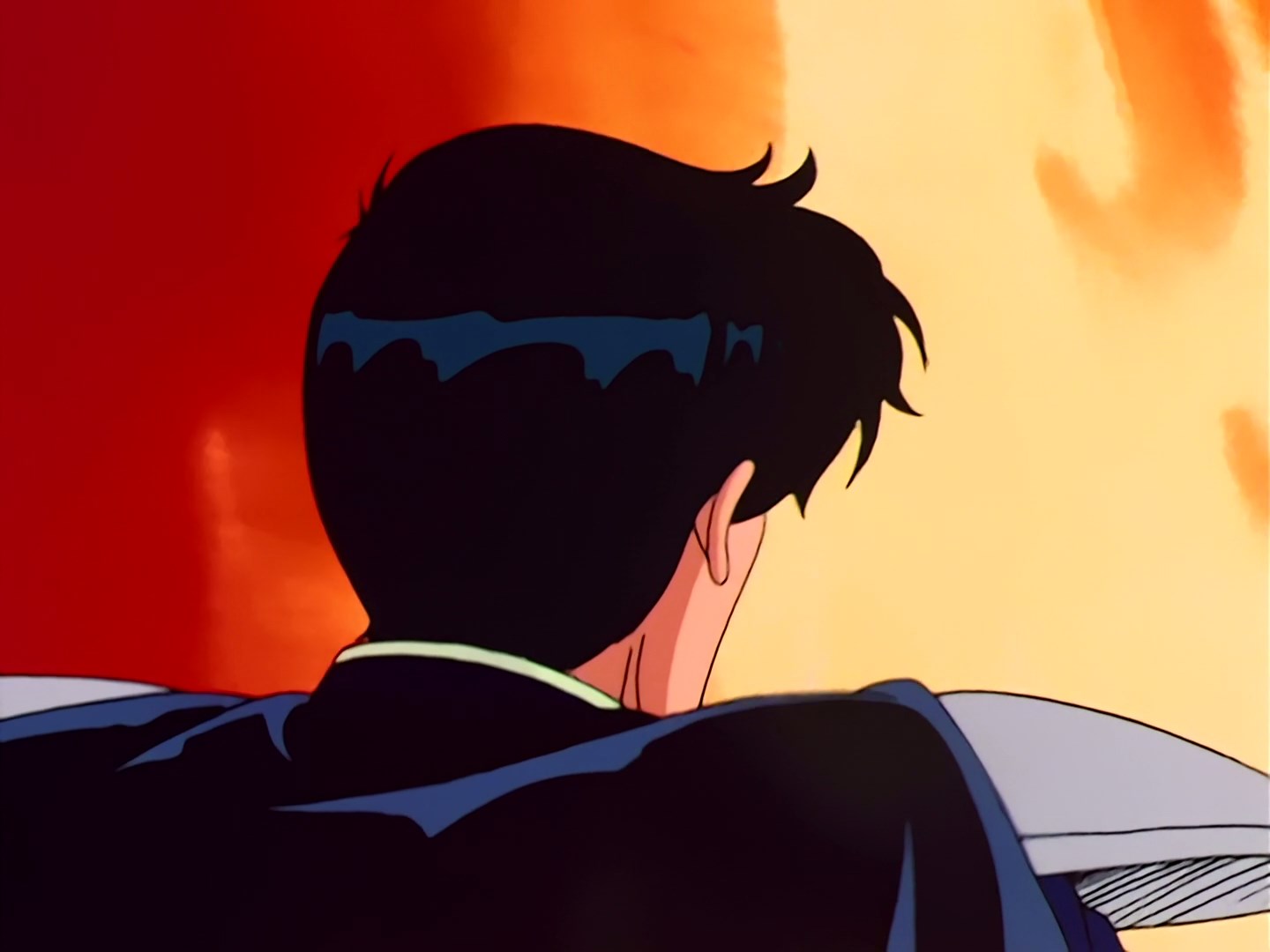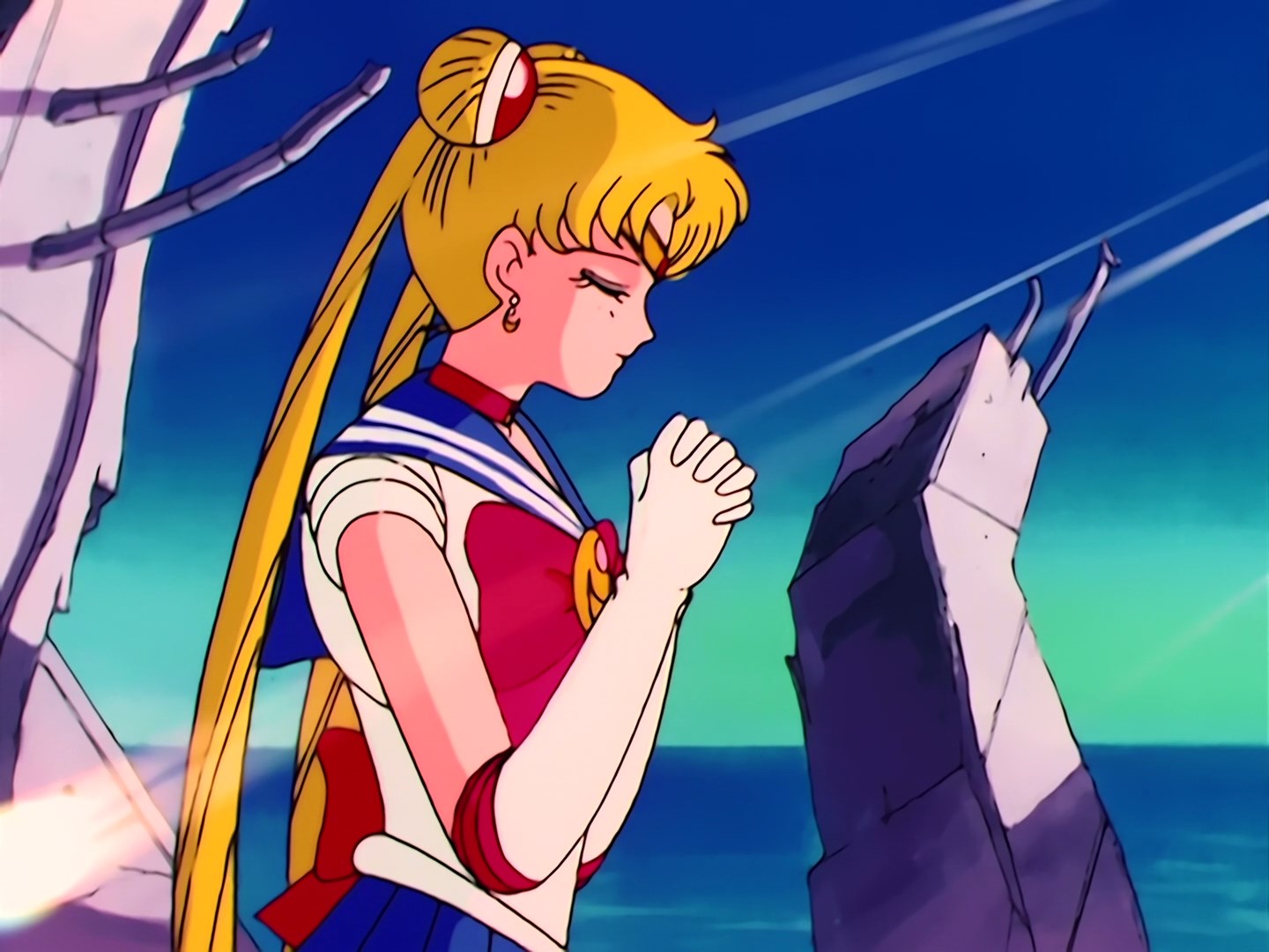 Moon wpatrując się we wschodzące słońce wierzy, że Tuxedo Kamen na pewno gdzieś tam jest żywy.