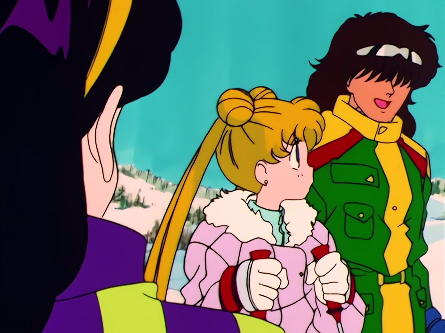 przeprasza, że nie był w stanie im pomóc, ale Usagi chwali go, że bardzo dobrze się spisał. Podjeżdżają do nich na nartach Ami, Mako i Minako. Dziewczyny cieszą się, że wszystko dobrze się skończyło. Rei zaczyna się przekomarzać z