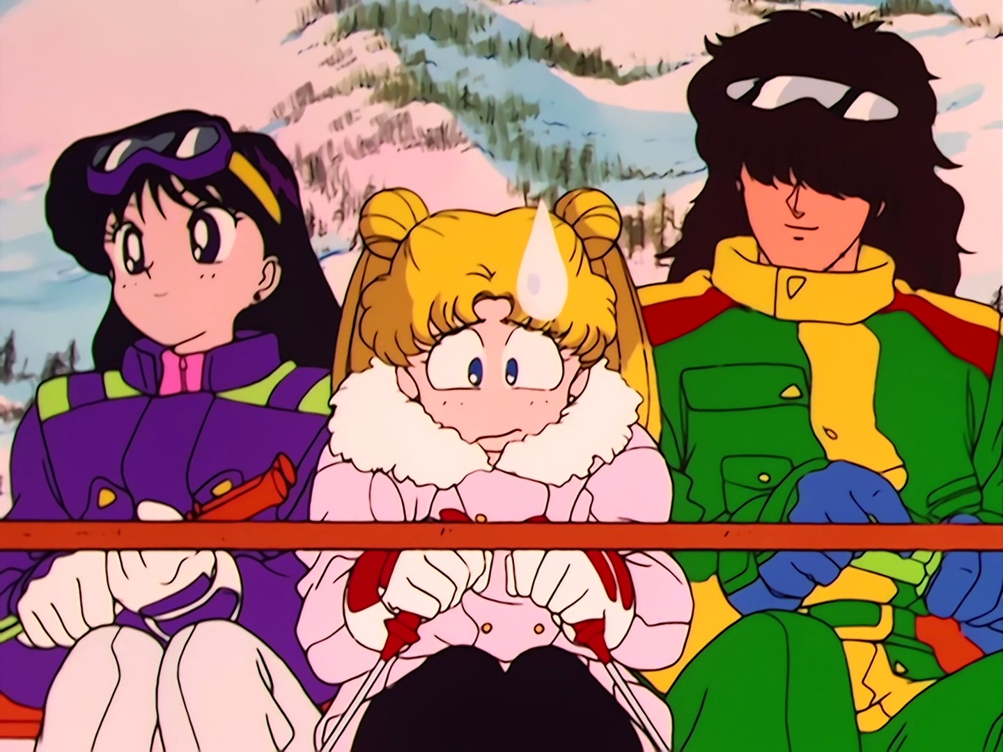Usagi, Ami, Mako i Minako zjeżdżają spokojnie na nartach i zastanawiają się gdzie podziali się Rei i Yuuichirou. Okazuje się, że oboje są doświadczonymi narciarzami i zjeżdżają po o wiele trudniejszej trasie. Dziewczyna zachęca