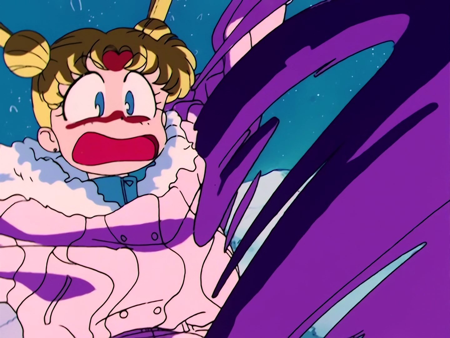 duża i przetacza się po nim. Rei wydaje się, że słyszała czyjś głos. Demon przechodzi do kolejnego etapu ataku i próbuję zgnieść Usagi fragmentami śnieżnych ścian, które wcześniej stworzyła. W tym momencie do Usagi dojeżdża Rei, łapie