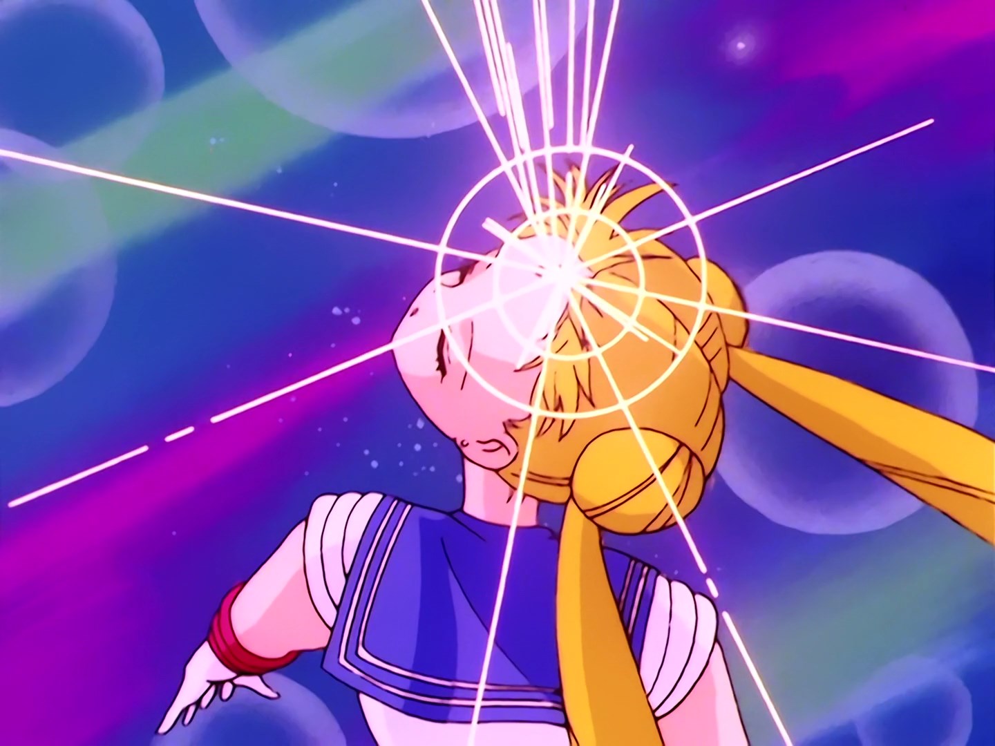 kolor, a Sailor Venus zauważa, że jej przyjaciółka zaraz zostanie zaatakowana i odpycha ją na bok. Teraz to ona staje się obiektem ataku Demonów. Sailor Moon błaga, aby Demony wypuściły Sailor Venus i proponuje im nawet oddanie Srebrnego