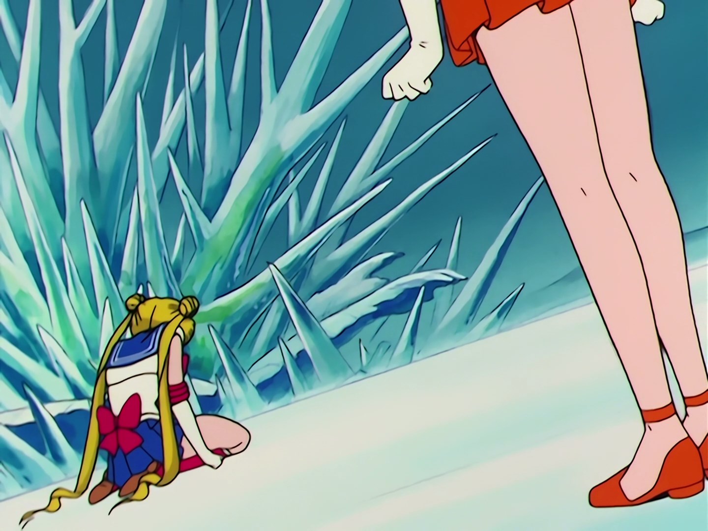 Sailor Venus ponagla Sailor Moon, że powinny iść dalej. Ta jednak jest zrezygnowana i po tym co się stało nie chcę już dalej walczyć. Wpada w panikę i wykrzykuje, że odda Srebrny Kryształ Królowej Beryl. Dziewczyny próbują ją