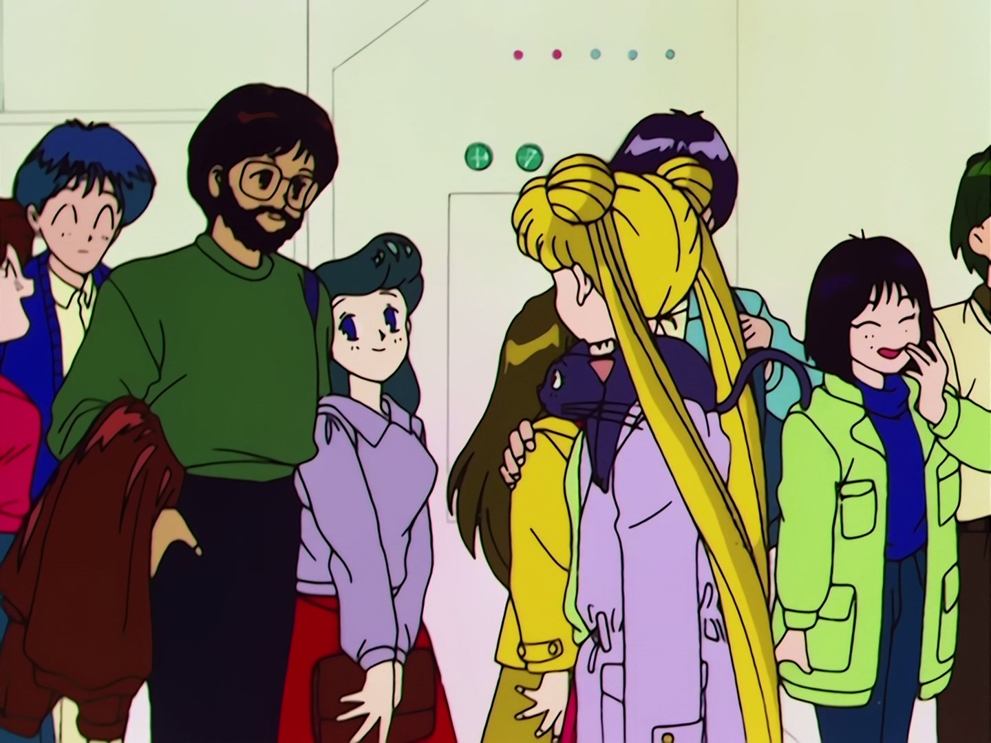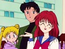 jakieś krzyki. Kiedy się odwraca zauważa swoją córkę trzymającą pod ramię Mamoru, a z drugiej strony do drugiej ręki chłopaka uczepiona jest Natsumi. Usagi ma pretensje do swojego brata, że przyszedł tutaj z tatą sam. Nagle pojazdy