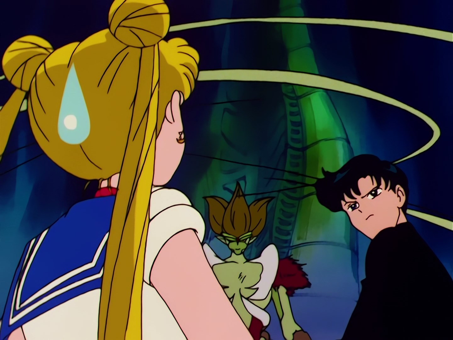 razem z ojcem dziwnie się zachowują i nie znikają. Mamoru postanawia zbadać sytuację, a Shingo proponuje, że zaprowadzi go w odpowiednie miejsce. Usagi zostaje sama, ale nie jest zadowolona z faktu, że brat zabrał ze sobą Mamoru i