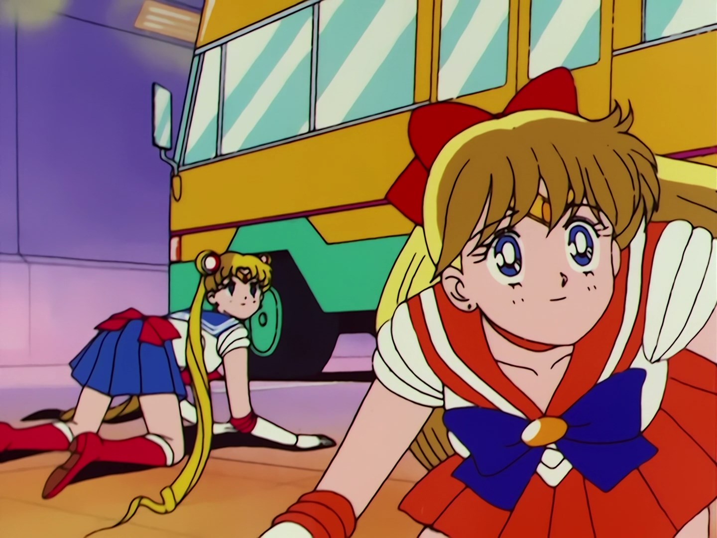 autobusu na zewnątrz. Gigaro szykuje się do kolejnego ataku na Sailor Moon, kiedy niespodziewanie pojawia się Sailor Venus i używa ataku Crescent Beam. Dzieci orientują się, że Sailor Venus również jest prawdziwą wojowniczką. Obie