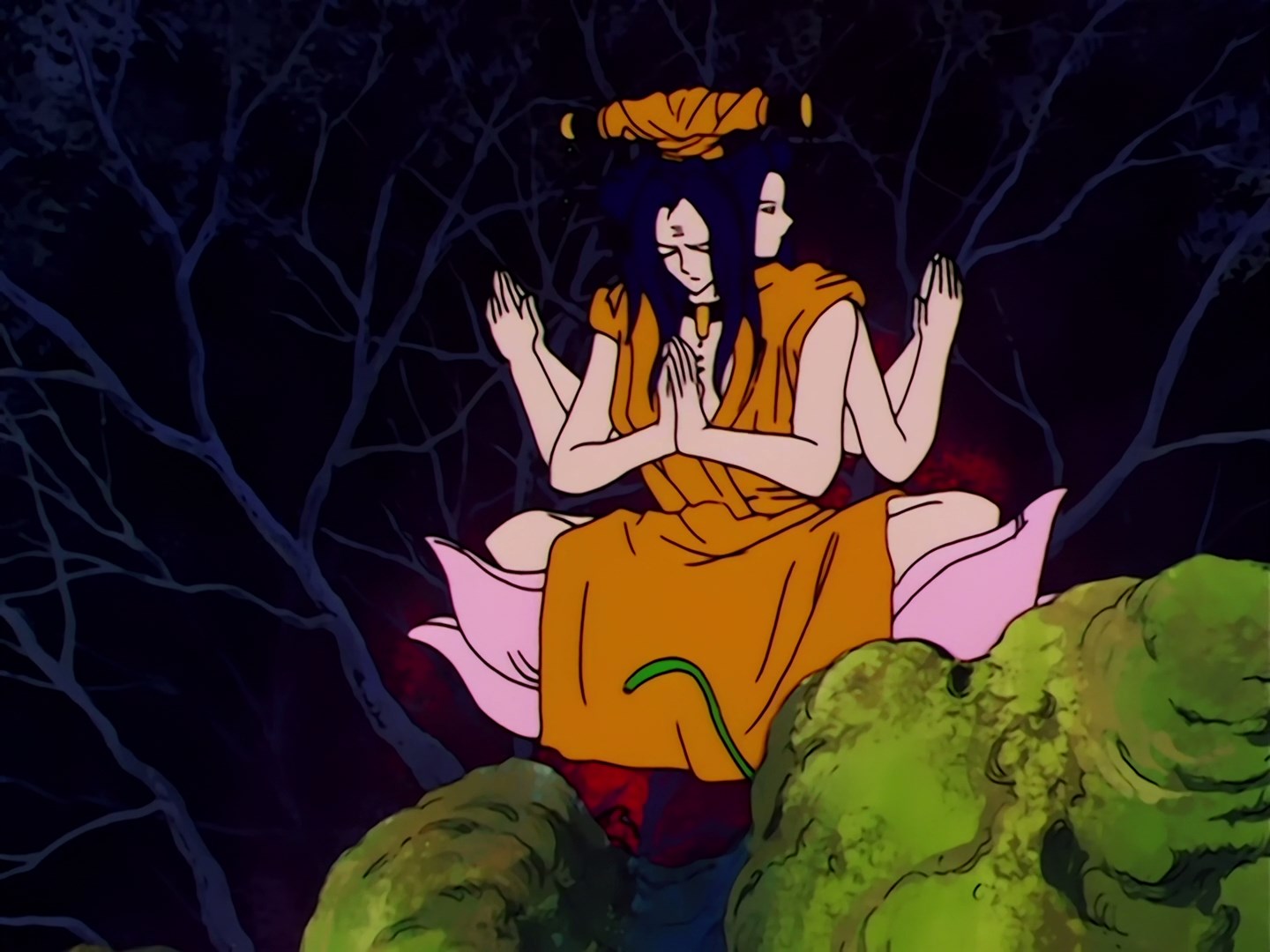 jest ciemno, ale po chwili pojawia się oślepiające światło i zaczynają oplatać się wokół niej pędy drzewa. Makaiju próbuje wciągnąć ją do środka, kiedy z opresji ratuje ją Seijuurou zamykając drzwi. Usagi jest przestraszona tym co