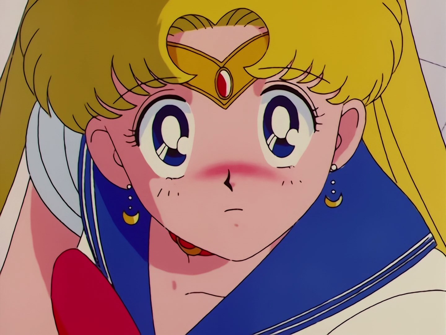 i wita się ze swoim chłopakiem rzucając mu się w ramiona. Mamoru nie okazuje jednak takiego samego entuzjazmu i odsuwa od siebie dziewczynę, mówiąc jej, żeby przestała się do niego przytulać. Usagi przeprasza go za swoje zachowanie,