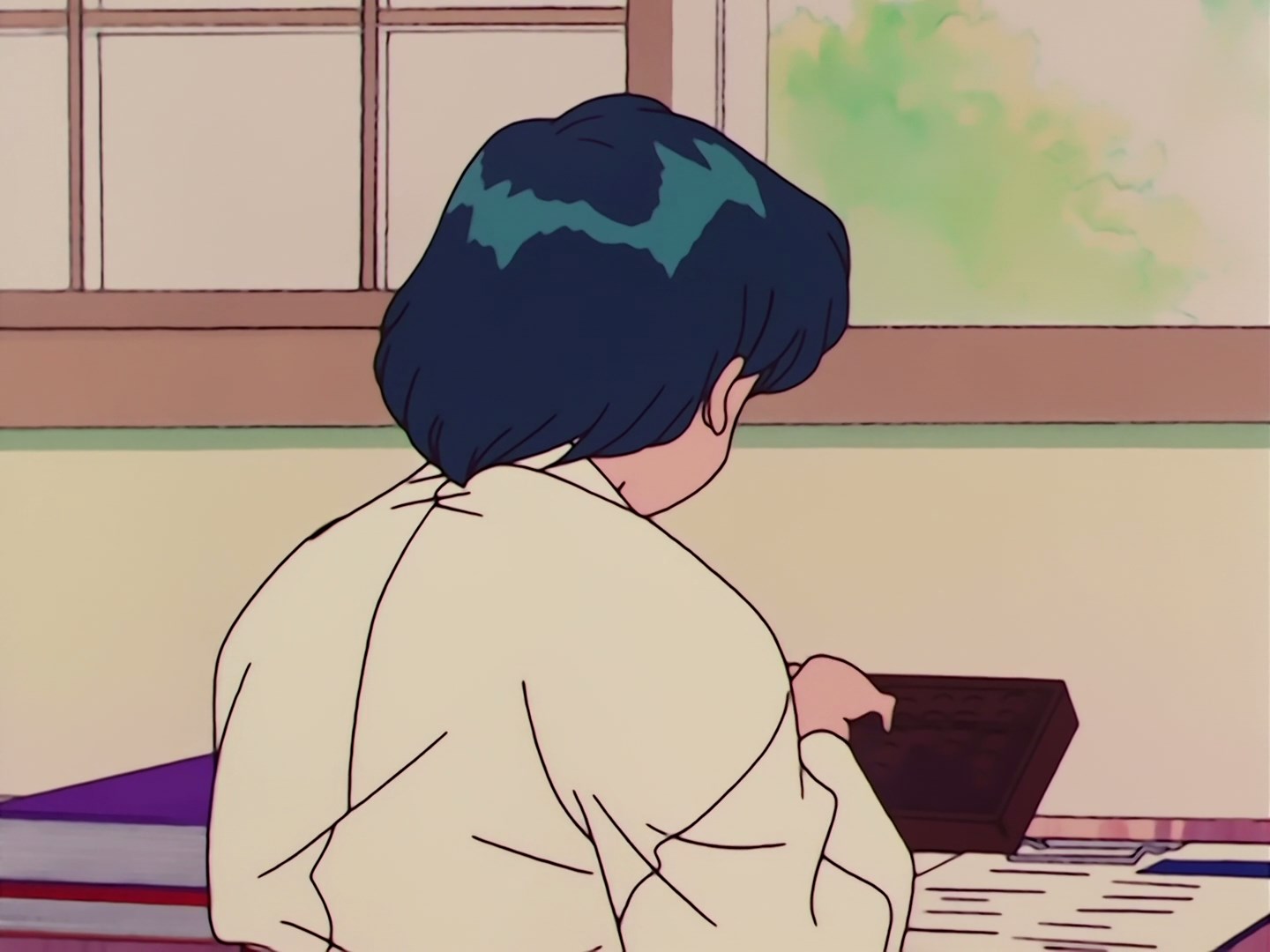 Usagi siedzi przy stoliku z złożonymi książkami i zeszytami, a Luna cieszy się, że dziewczyna uczy się. Wchodzi na stolik i zauważa, że Usagi jednak się nie uczy, a śpi na stoliku co, załamuje kotkę. Nagle Usagi zaczyna chichotać,