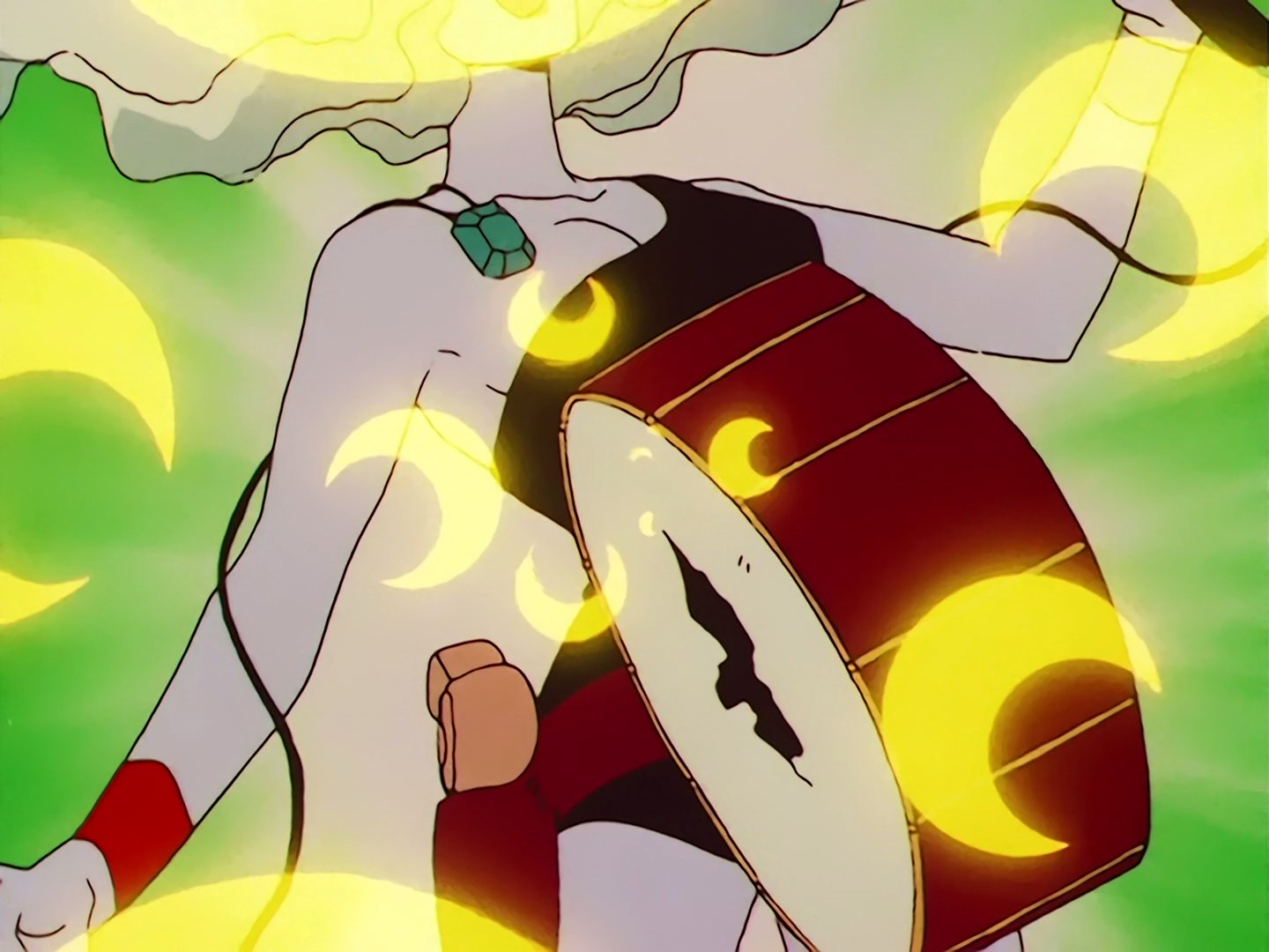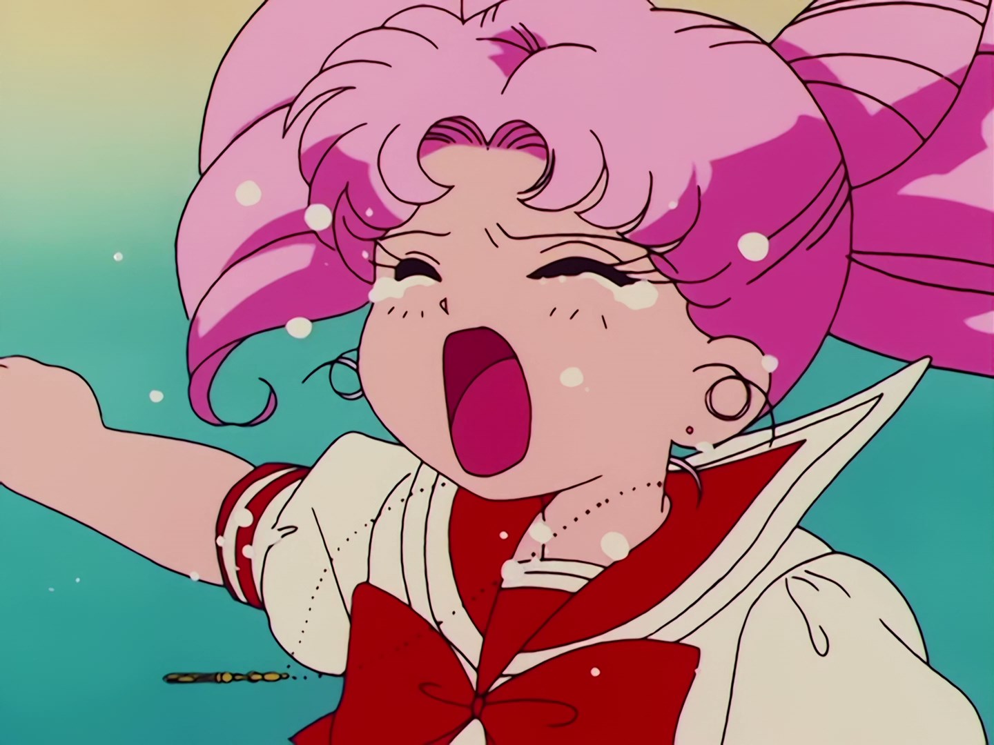 Chibiusa również zaczyna unosić się w powietrzu co sprawia, że dziewczynka jest coraz bardziej przerażona i po chwili zaczyna płakać. Na jej czole rozświetla się znak półksiężyca, a jej ciało zaczyna emanować dużą ilością energii.