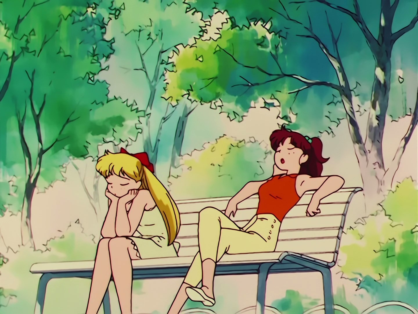 Minako siedzi na ławce w parku i narzeka na upał oraz na zakochane pary siedzące dookoła. Nagle podbiega do niej Mako i przeprasza ją za spóźnienie. Minako nie jest zadowolona ze spóźnienia swojej przyjaciółki, a Mako mówi, że jej przyjaciółka
