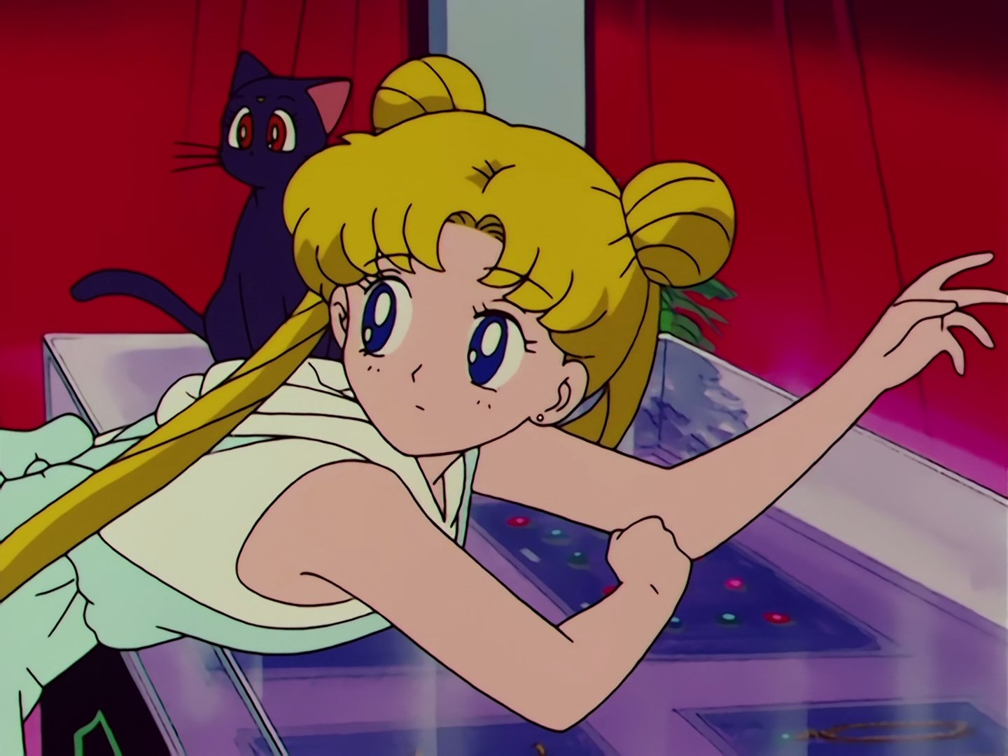 wypicia. Luna stwierdza, że to głupie i na pewno nikt się na coś takiego nie nabierze, po czym Usagi od razu wyjmuje z kieszeni monetę do wrzucenia do automatu. Mako stwierdza, że to idealne miejsce dla Usagi, a po chwili z zaskoczeniem