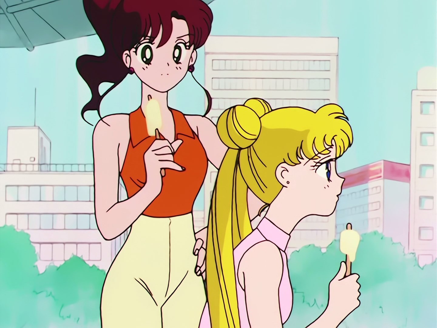 Dziewczyny siedzą w parku w cieniu pod parasolem i jedzą lody. Rozmawiają o sytuacji z wrogiem i każda z nich po kolei wymienia różne aspekty sprawy, nad którymi powinny się zastanowić. Usagi jednak odpowiada na wszystko jednym