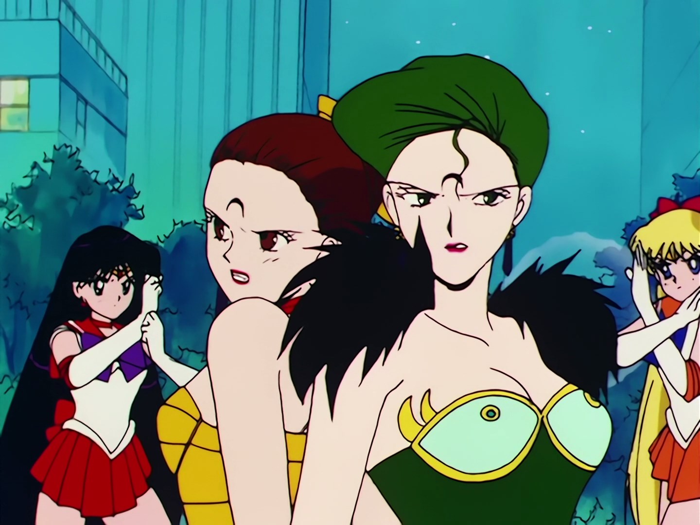 wykorzystać fakt, że Chibiusa została sama i pozbyć się jej. Na szczęście w parku pojawiają się pozostałe cztery wojowniczki i otaczają dwie siostry. Calaveras i Petz wycofują się z walki, bo wojowniczek jest więcej i rozkazują Droidowi,