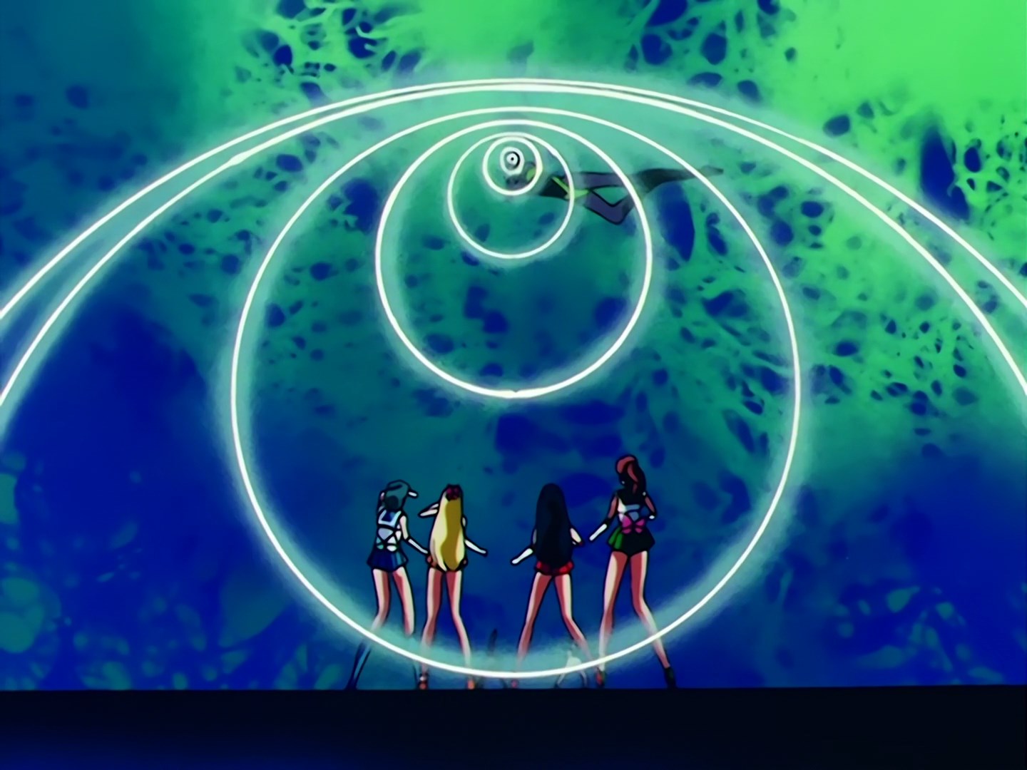 aby śniła dalej, a we śnie zużyła całą swoją energię i umarła. Akumuda jako kłąb dymu wlatuje przez usta Sailor Moon do środka jej ciała. Dziewczyny próbują ją powstrzymać, ale im się nie udaje. Cztery wojowniczki i dwa koty stoją