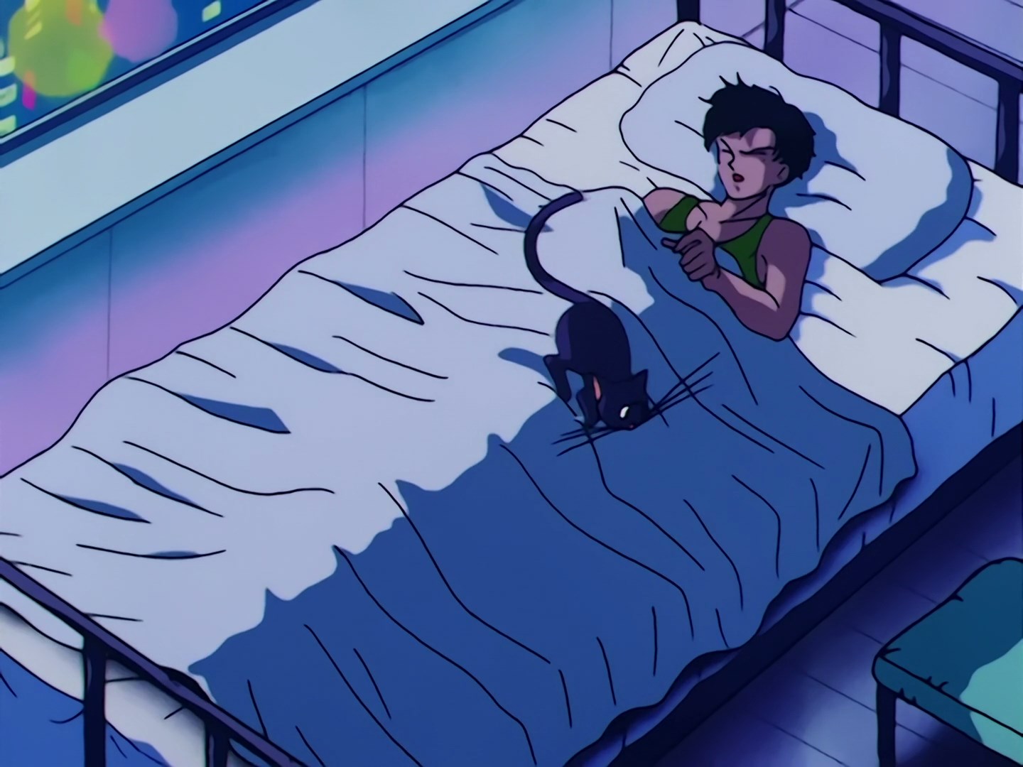Luna wskakuje przez okno do mieszkania Mamoru budząc go przy tym. Kotka prosi go o pomoc w uratowaniu Sailor Moon, ale on nie za bardzo chce podejmować jakiekolwiek działanie. Luna dalej prosi go o pomoc ze łzami w oczach i jednocześnie