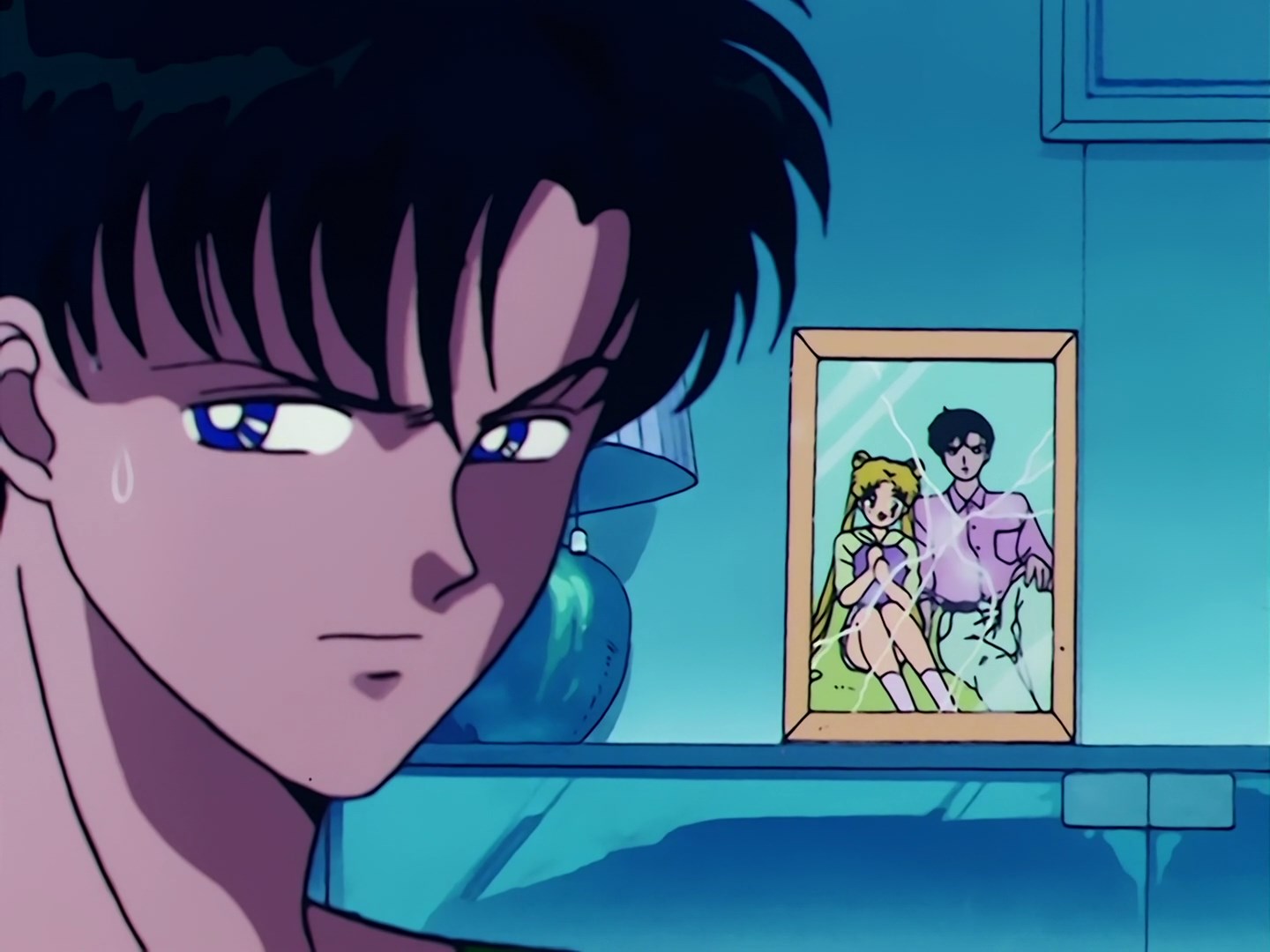 chwili Mamoru budzi się z krzykiem z koszmarnego snu. Chłopak siedzi na łóżku i wpatruje się w ich wspólne zdjęcie. Martwi się tym, że jego ukochanej może przydarzyć się coś złego. Kiedy rozmyśla nad tą sytuacją szyba w ramce pęka,