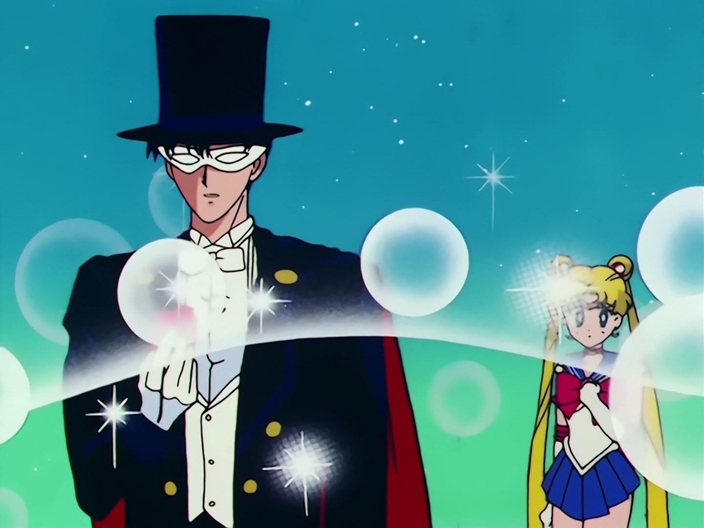 Tuxedo Kamen, podchodzi do Sailor Moon i również próbuje ją ocucić. Wojowniczka nie odzyskuje przytomności, a jedynie wypowiada jego imię. Tuxedo Kamen obejmuje Sailor Moon i przeprasza ją za to jak się zachowywał. Po chwili całuje