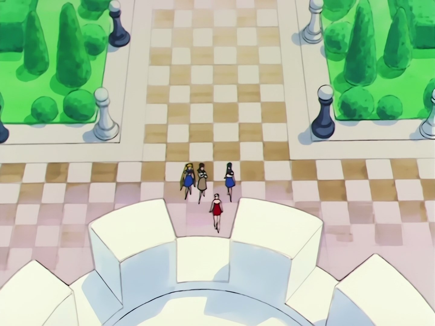 Usagi, Mako i Ami przychodzą razem do Wieży Szachowej. Jest to budynek zbudowany w kształcie tej właśnie figury szachowej, chociaż na początku Usagi i Mako nie do końca rozpoznają jego kształt. Ami dodaje, że właściciel tego budynku