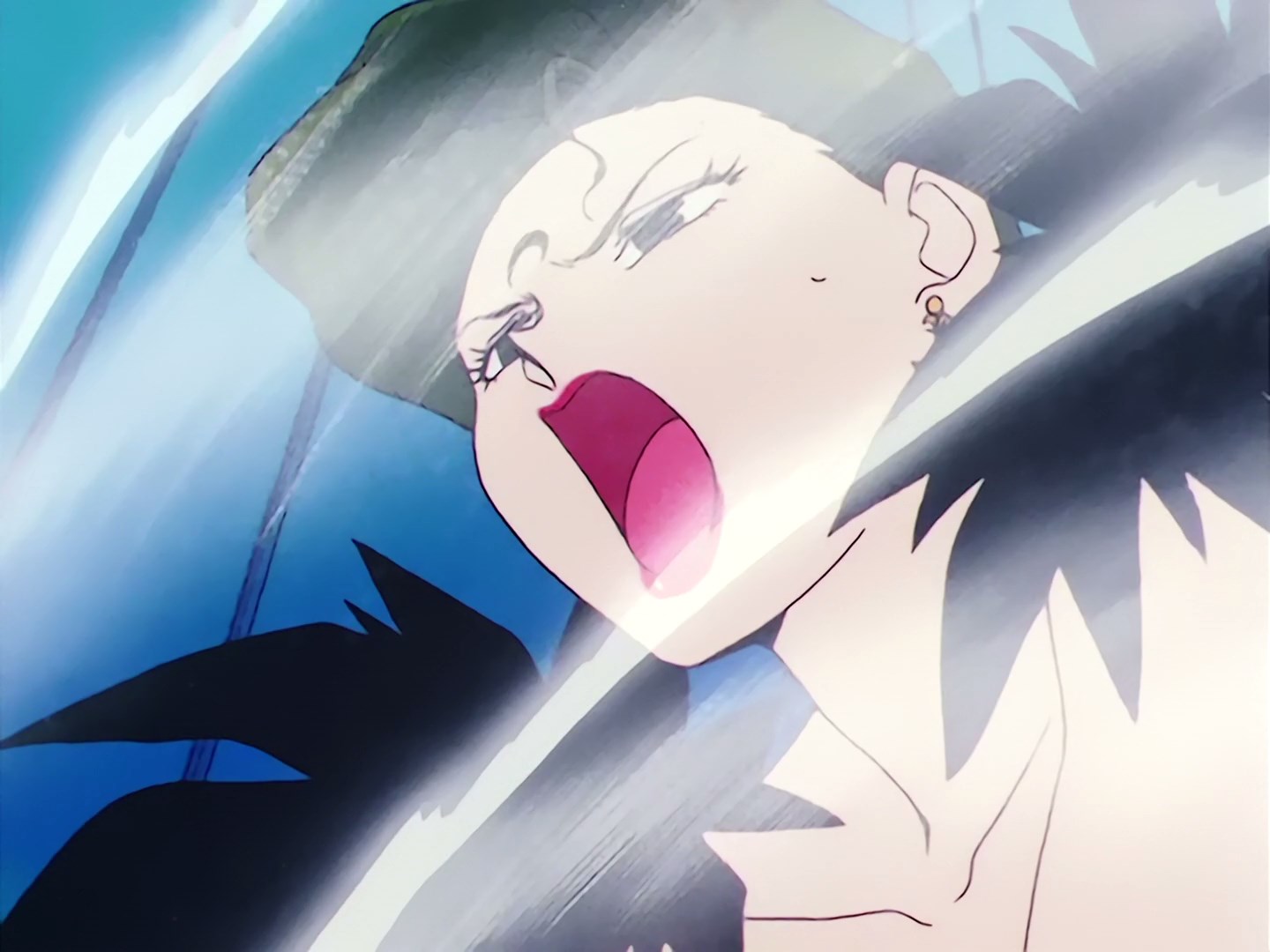 zaczyna ją wciągać do środka, ale z opresji ratuje ją Calaveras. Do pomocy przyłączają się wszystkie siostry. Sailor Moon jest przerażona, że dziura może je wszystkie wciągnąć. Na miejscu pojawia się Tuxedo Kamen, który zachęca ją,